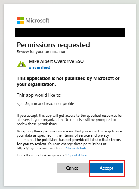 Consent to Mike Albert Overdrive SSO Application by following this link and completing the steps: