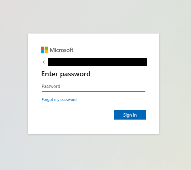 If all previous steps where completed, you will be redirected to Microsoft's login page